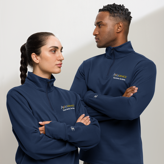Quarter zip pullover with Axiogenics Logo and "Think Better. Be Better"