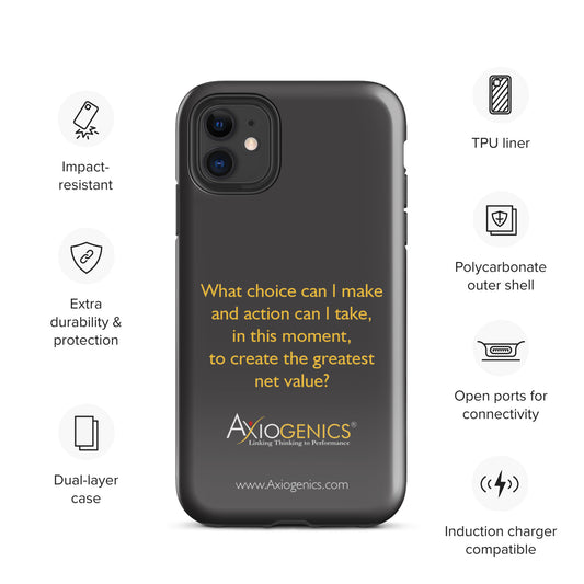 Dark Unisex heavy blend zip hoodie with Axiogenics Logo and tagline on front