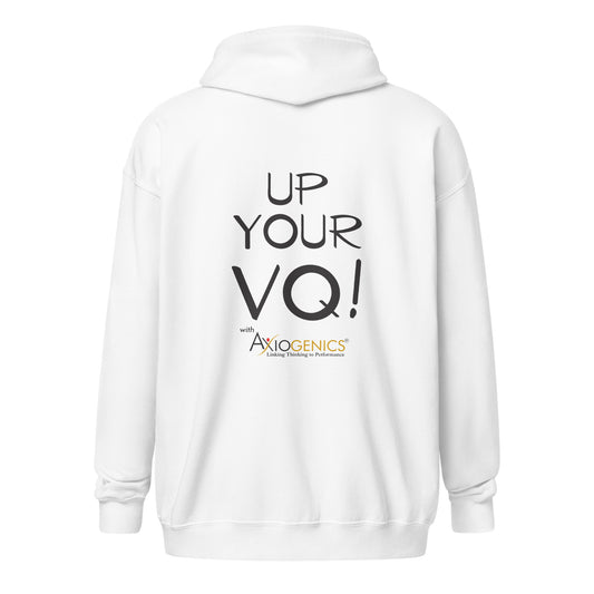 Unisex heavy blend zip hoodie w/ Up Your VQ on back Embroidered Partner Logo on Front